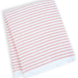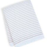 The towel is woven from the finest quality, 100% combed cotton, known for its exceptional softness, high absorbency, and durability.